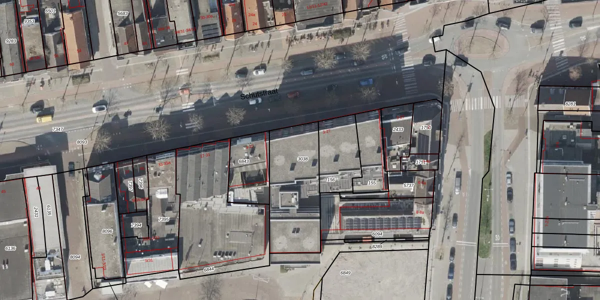 Het perceel waarop Schutstraat 11-26 staat heeft een oppervlakte van 692 m². Dit is een groot perceel. De perceeloppervlakte wordt geregistreerd door het Kadaster. Gedetailleerde informatie over de maten van dit perceel kunt u vinden in het rapport Kadastrale kaart met maatvoering van Schutstraat 11-26.