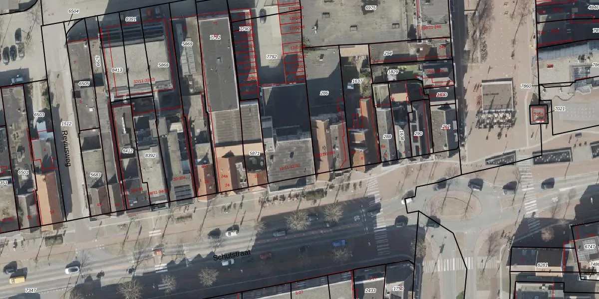 Schutstraat 12-12 is gelegen op kadastraal perceel HGV00O7792. Deze kadastrale aanduiding is uniek en wordt gebruikt door het Kadaster om eigendomsrechten en andere zakelijke rechten vast te leggen. Het perceel maakt onderdeel uit van de kadastrale gemeente Hoogeveen.