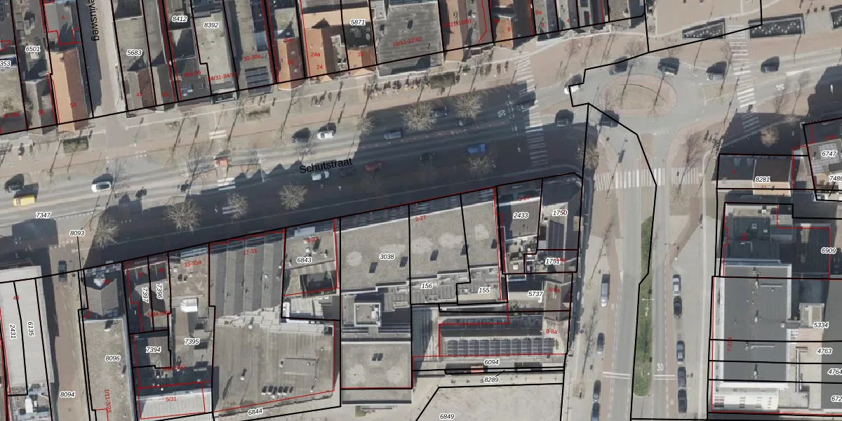 Schutstraat 7 is gelegen op kadastraal perceel HGV00O156. Deze kadastrale aanduiding is uniek en wordt gebruikt door het Kadaster om eigendomsrechten en andere zakelijke rechten vast te leggen. Het perceel maakt onderdeel uit van de kadastrale gemeente Hoogeveen.