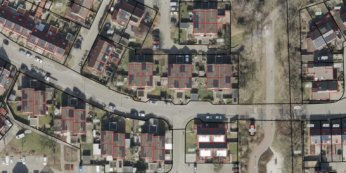Het perceel waarop Schuttevaer 38 staat heeft een oppervlakte van 2385 m². Dit is een zeer groot perceel. De perceeloppervlakte wordt geregistreerd door het Kadaster. Gedetailleerde informatie over de maten van dit perceel kunt u vinden in het rapport Kadastrale kaart met maatvoering van Schuttevaer 38.