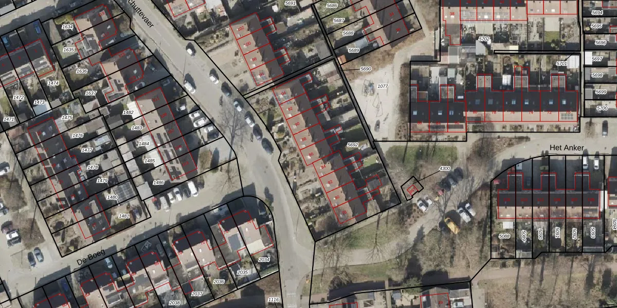 Het perceel waarop Schuttevaer 86 staat heeft een oppervlakte van 1540 m². Dit is een zeer groot perceel. De perceeloppervlakte wordt geregistreerd door het Kadaster. Gedetailleerde informatie over de maten van dit perceel kunt u vinden in het rapport Kadastrale kaart met maatvoering van Schuttevaer 86.