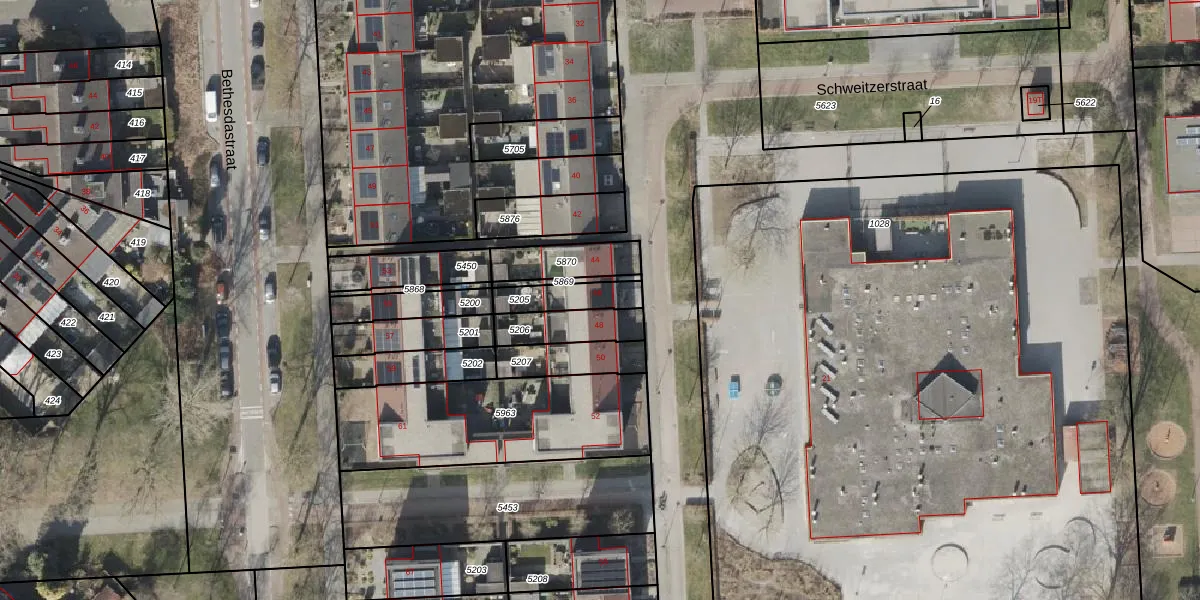 Het perceel waarop Schweitzerstraat 46 staat heeft een oppervlakte van 111 m². Dit is een middelgroot perceel. De perceeloppervlakte wordt geregistreerd door het Kadaster. Gedetailleerde informatie over de maten van dit perceel kunt u vinden in het rapport Kadastrale kaart met maatvoering van Schweitzerstraat 46.