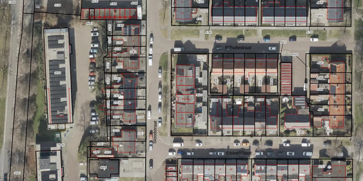 Het perceel waarop Sloodstraat 17 staat heeft een oppervlakte van 931 m². Dit is een groot perceel. De perceeloppervlakte wordt geregistreerd door het Kadaster. Gedetailleerde informatie over de maten van dit perceel kunt u vinden in het rapport Kadastrale kaart met maatvoering van Sloodstraat 17.