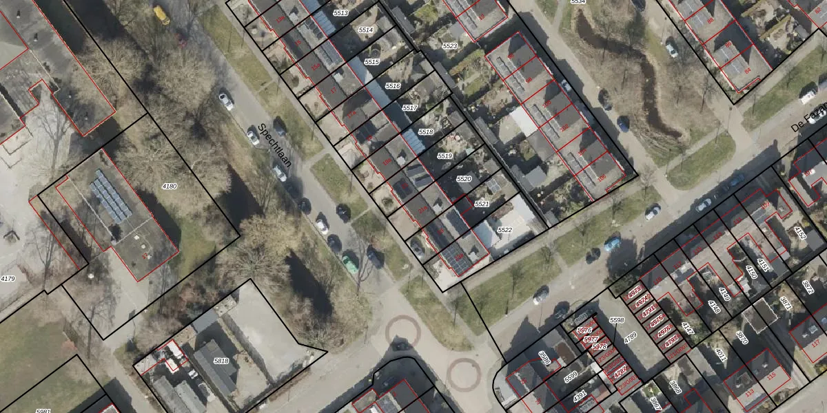 Gebruik de zoekbalk of klik op een perceel voor informatie over de adressen binnen dit perceel.
