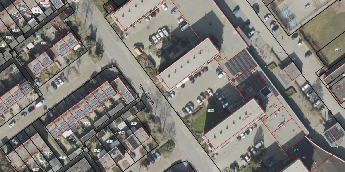 Het perceel waarop Sperwerlaan 43-G001 staat heeft een oppervlakte van 1,4 ha. Dit is een zeer groot perceel. De perceeloppervlakte wordt geregistreerd door het Kadaster. Gedetailleerde informatie over de maten van dit perceel kunt u vinden in het rapport Kadastrale kaart met maatvoering van Sperwerlaan 43-G001.