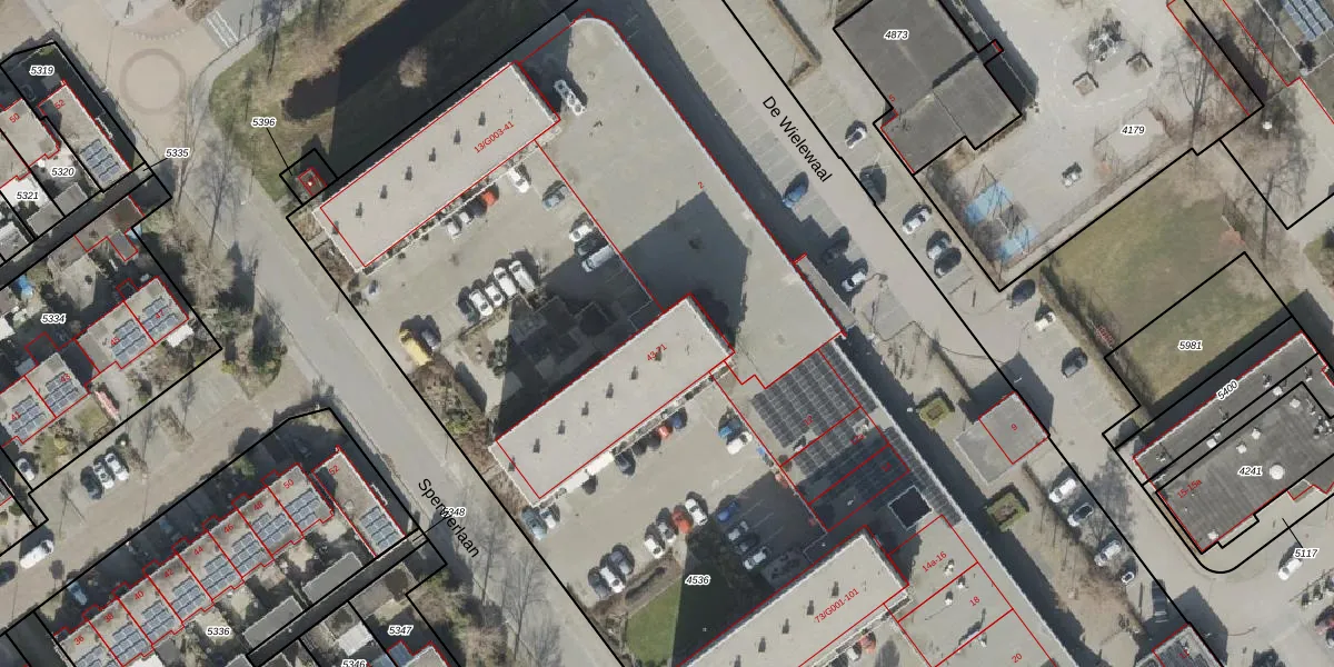 Het perceel waarop Sperwerlaan 69 staat heeft een oppervlakte van 1,4 ha. Dit is een zeer groot perceel. De perceeloppervlakte wordt geregistreerd door het Kadaster. Gedetailleerde informatie over de maten van dit perceel kunt u vinden in het rapport Kadastrale kaart met maatvoering van Sperwerlaan 69.