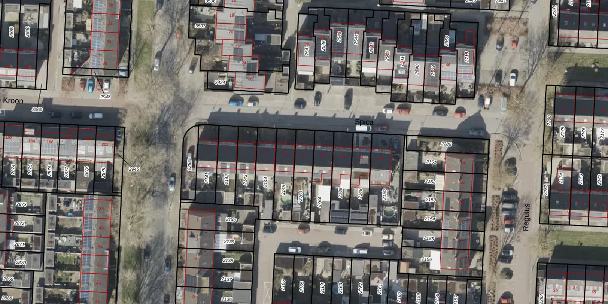 Het perceel waarop Spica 12 staat heeft een oppervlakte van 188 m². Dit is een middelgroot perceel. De perceeloppervlakte wordt geregistreerd door het Kadaster. Gedetailleerde informatie over de maten van dit perceel kunt u vinden in het rapport Kadastrale kaart met maatvoering van Spica 12.