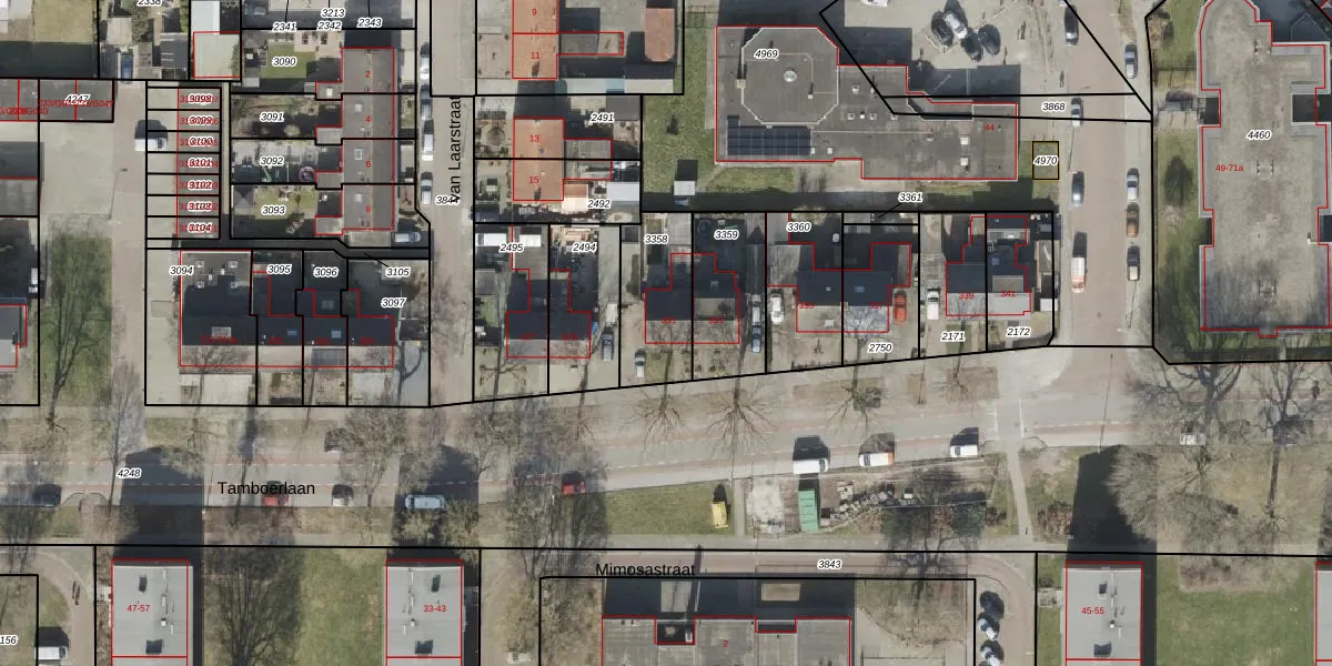Tamboerlaan 331 is gelegen op kadastraal perceel HGV00I3358. Deze kadastrale aanduiding is uniek en wordt gebruikt door het Kadaster om eigendomsrechten en andere zakelijke rechten vast te leggen. Het perceel maakt onderdeel uit van de kadastrale gemeente Hoogeveen.