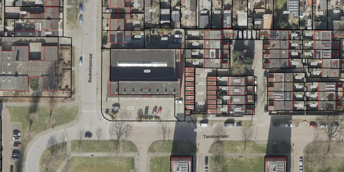 Tamboerlaan 9 is gelegen op kadastraal perceel HGV00I2420. Deze kadastrale aanduiding is uniek en wordt gebruikt door het Kadaster om eigendomsrechten en andere zakelijke rechten vast te leggen. Het perceel maakt onderdeel uit van de kadastrale gemeente Hoogeveen.