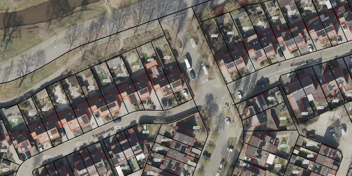 Het perceel waarop Tarwekamp 2 staat heeft een oppervlakte van 351 m². Dit is een groot perceel. De perceeloppervlakte wordt geregistreerd door het Kadaster. Gedetailleerde informatie over de maten van dit perceel kunt u vinden in het rapport Kadastrale kaart met maatvoering van Tarwekamp 2.