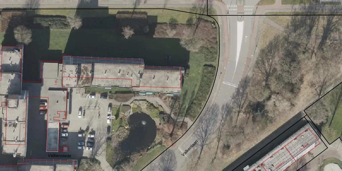 Het perceel waarop Valkenstede 2 staat heeft een oppervlakte van 2,1 ha. Dit is een zeer groot perceel. De perceeloppervlakte wordt geregistreerd door het Kadaster. Gedetailleerde informatie over de maten van dit perceel kunt u vinden in het rapport Kadastrale kaart met maatvoering van Valkenstede 2.