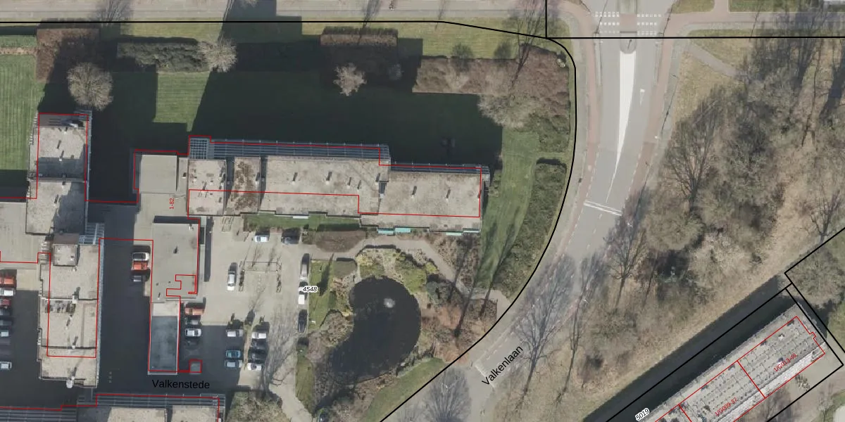 Het perceel waarop Valkenstede 3 staat heeft een oppervlakte van 2,1 ha. Dit is een zeer groot perceel. De perceeloppervlakte wordt geregistreerd door het Kadaster. Gedetailleerde informatie over de maten van dit perceel kunt u vinden in het rapport Kadastrale kaart met maatvoering van Valkenstede 3.