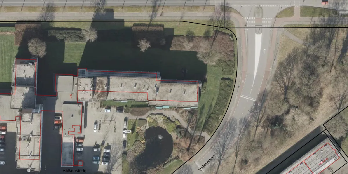 Het perceel waarop Valkenstede 36 staat heeft een oppervlakte van 2,1 ha. Dit is een zeer groot perceel. De perceeloppervlakte wordt geregistreerd door het Kadaster. Gedetailleerde informatie over de maten van dit perceel kunt u vinden in het rapport Kadastrale kaart met maatvoering van Valkenstede 36.