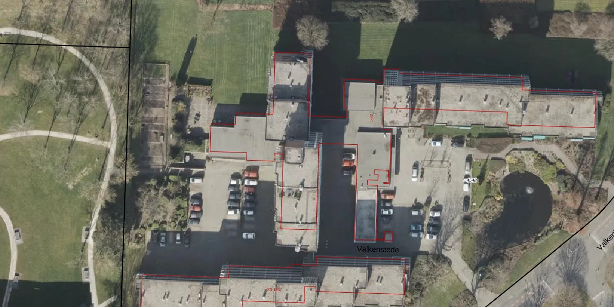 Het perceel waarop Valkenstede 49 staat heeft een oppervlakte van 2,1 ha. Dit is een zeer groot perceel. De perceeloppervlakte wordt geregistreerd door het Kadaster. Gedetailleerde informatie over de maten van dit perceel kunt u vinden in het rapport Kadastrale kaart met maatvoering van Valkenstede 49.