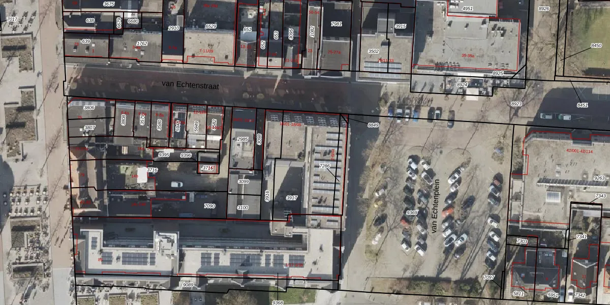 van Echtenplein 6-25 is gelegen op kadastraal perceel HGV00O3917. Deze kadastrale aanduiding is uniek en wordt gebruikt door het Kadaster om eigendomsrechten en andere zakelijke rechten vast te leggen. Het perceel maakt onderdeel uit van de kadastrale gemeente Hoogeveen.