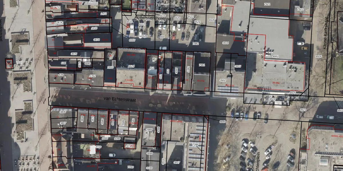 van Echtenstraat 19 is gelegen op kadastraal perceel HGV00O653. Deze kadastrale aanduiding is uniek en wordt gebruikt door het Kadaster om eigendomsrechten en andere zakelijke rechten vast te leggen. Het perceel maakt onderdeel uit van de kadastrale gemeente Hoogeveen.