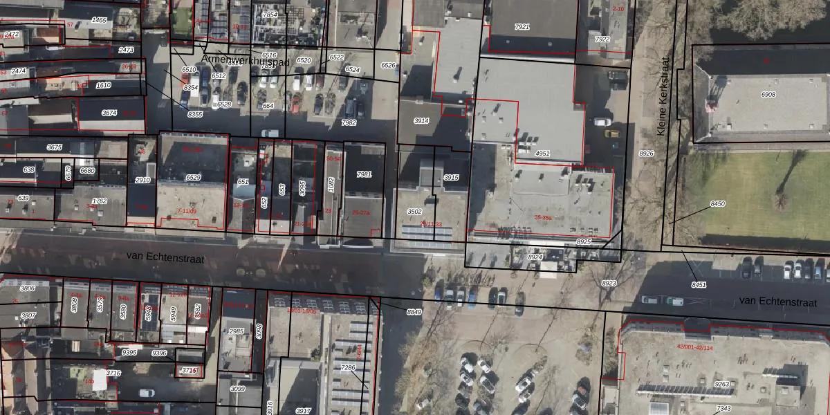 van Echtenstraat 29-21 is gelegen op kadastraal perceel HGV00O3502. Deze kadastrale aanduiding is uniek en wordt gebruikt door het Kadaster om eigendomsrechten en andere zakelijke rechten vast te leggen. Het perceel maakt onderdeel uit van de kadastrale gemeente Hoogeveen.