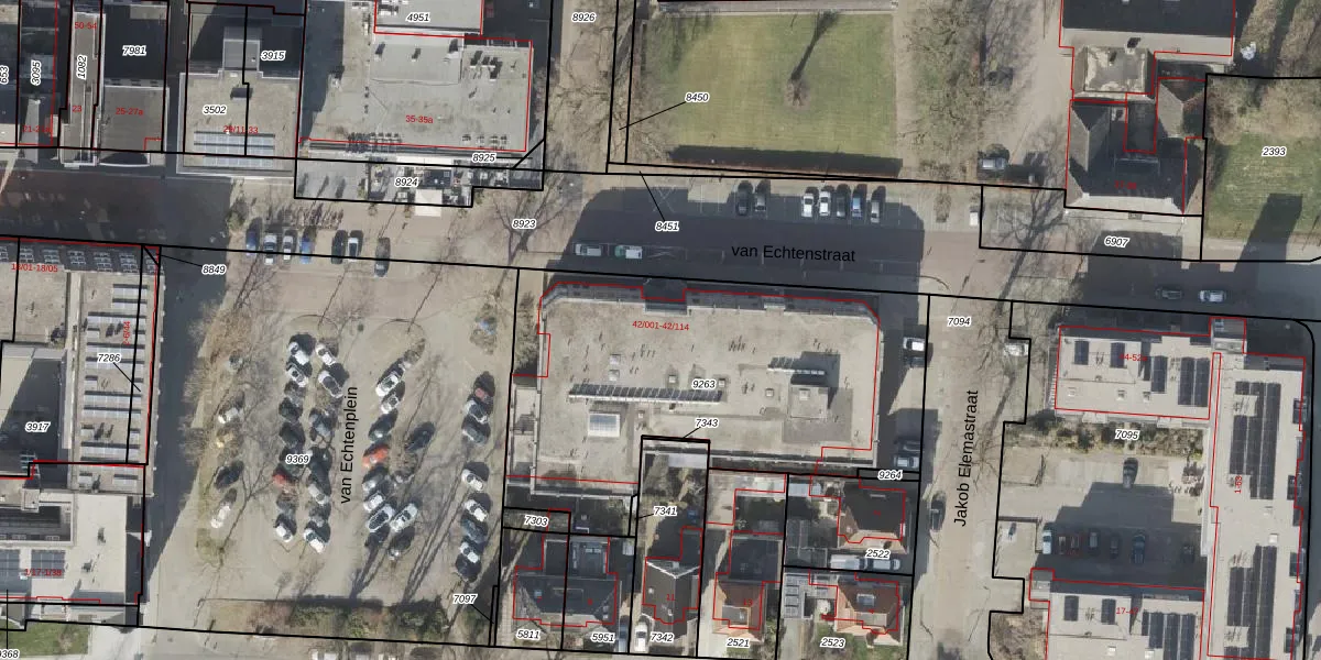 van Echtenstraat 42-105 is gelegen op kadastraal perceel HGV00O9263. Deze kadastrale aanduiding is uniek en wordt gebruikt door het Kadaster om eigendomsrechten en andere zakelijke rechten vast te leggen. Het perceel maakt onderdeel uit van de kadastrale gemeente Hoogeveen.