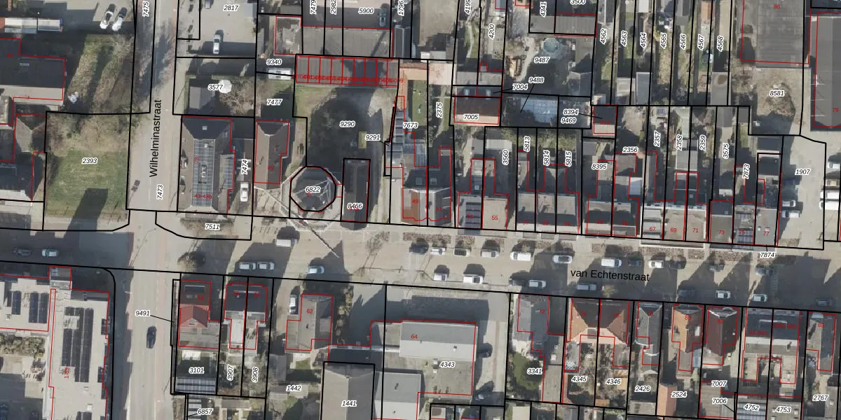 Gebruik de zoekbalk of klik op een perceel voor informatie over de adressen binnen dit perceel.
