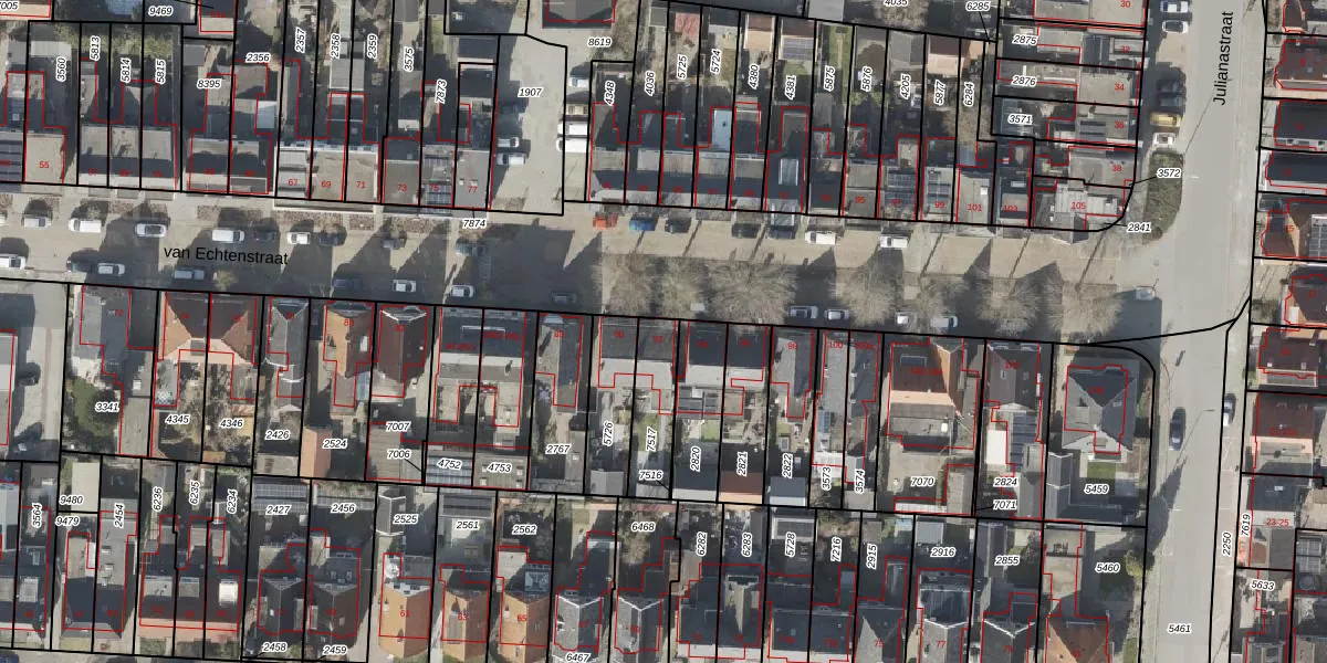 Het perceel waarop van Echtenstraat 92 staat heeft een oppervlakte van 175 m². Dit is een middelgroot perceel. De perceeloppervlakte wordt geregistreerd door het Kadaster. Gedetailleerde informatie over de maten van dit perceel kunt u vinden in het rapport Kadastrale kaart met maatvoering van van Echtenstraat 92.
