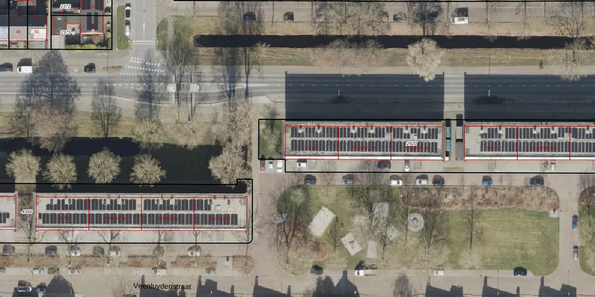Het perceel waarop Veenluydenstraat 97 staat heeft een oppervlakte van 2527 m². Dit is een zeer groot perceel. De perceeloppervlakte wordt geregistreerd door het Kadaster. Gedetailleerde informatie over de maten van dit perceel kunt u vinden in het rapport Kadastrale kaart met maatvoering van Veenluydenstraat 97.