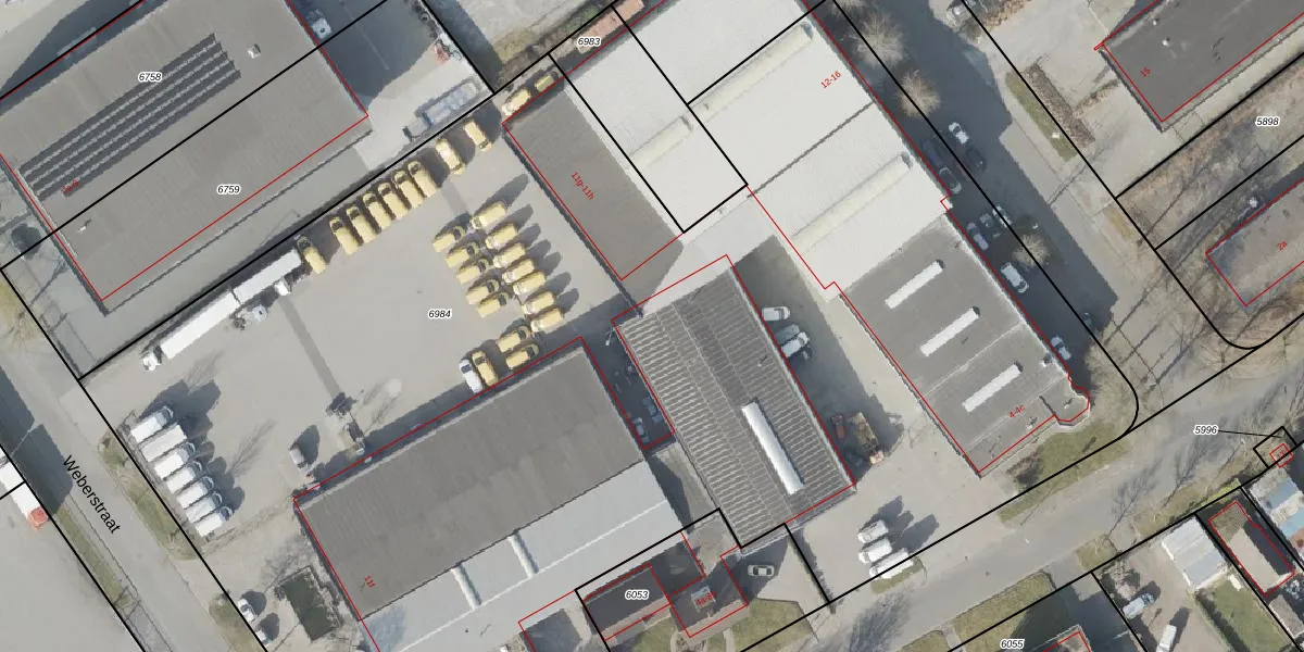 Weberstraat 11-f is gelegen op kadastraal perceel HGV00A6984. Deze kadastrale aanduiding is uniek en wordt gebruikt door het Kadaster om eigendomsrechten en andere zakelijke rechten vast te leggen. Het perceel maakt onderdeel uit van de kadastrale gemeente Hoogeveen.