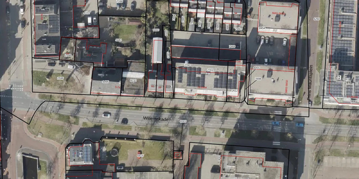 Het perceel waarop Willemskade 17 staat heeft een oppervlakte van 1093 m². Dit is een zeer groot perceel. De perceeloppervlakte wordt geregistreerd door het Kadaster. Gedetailleerde informatie over de maten van dit perceel kunt u vinden in het rapport Kadastrale kaart met maatvoering van Willemskade 17.