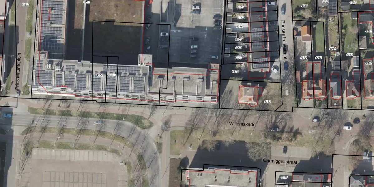 Het perceel waarop Willemskade 29-109 staat heeft een oppervlakte van 5069 m². Dit is een zeer groot perceel. De perceeloppervlakte wordt geregistreerd door het Kadaster. Gedetailleerde informatie over de maten van dit perceel kunt u vinden in het rapport Kadastrale kaart met maatvoering van Willemskade 29-109.