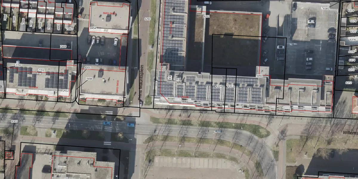 Het perceel waarop Willemskade 29-301 staat heeft een oppervlakte van 5069 m². Dit is een zeer groot perceel. De perceeloppervlakte wordt geregistreerd door het Kadaster. Gedetailleerde informatie over de maten van dit perceel kunt u vinden in het rapport Kadastrale kaart met maatvoering van Willemskade 29-301.