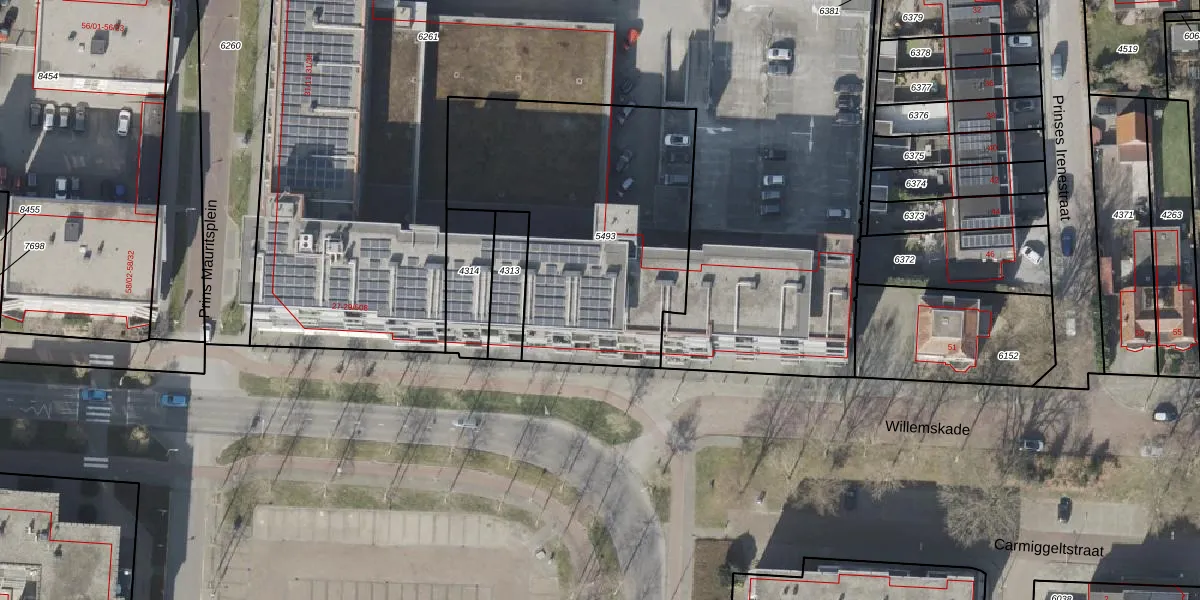 Het perceel waarop Willemskade 29-308 staat heeft een oppervlakte van 1396 m². Dit is een zeer groot perceel. De perceeloppervlakte wordt geregistreerd door het Kadaster. Gedetailleerde informatie over de maten van dit perceel kunt u vinden in het rapport Kadastrale kaart met maatvoering van Willemskade 29-308.