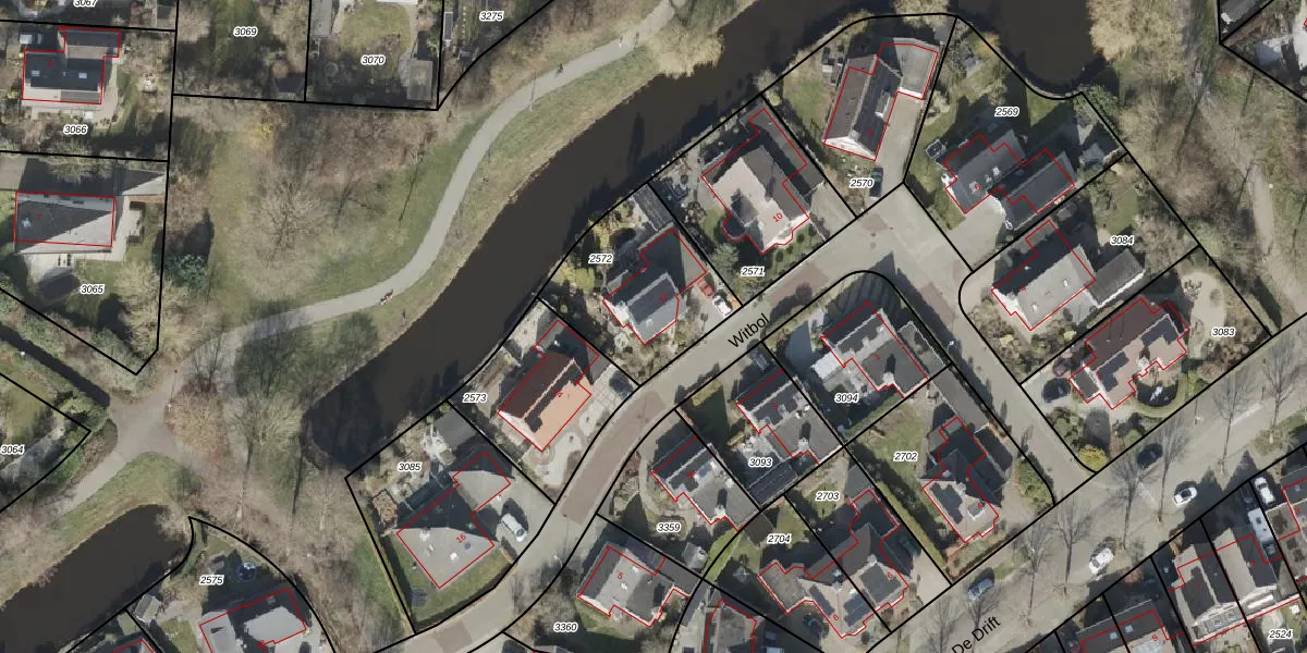 Het perceel waarop Witbol 12 staat heeft een oppervlakte van 514 m². Dit is een groot perceel. De perceeloppervlakte wordt geregistreerd door het Kadaster. Gedetailleerde informatie over de maten van dit perceel kunt u vinden in het rapport Kadastrale kaart met maatvoering van Witbol 12.