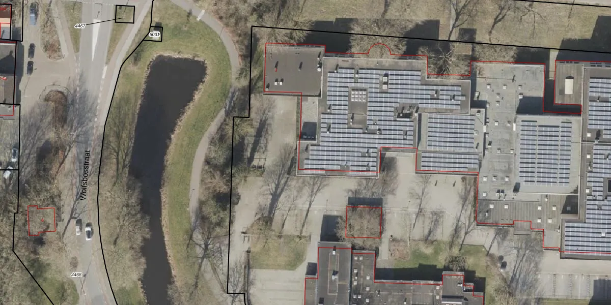 Het perceel waarop Wolfsbosstraat 3 staat heeft een oppervlakte van 5,1 ha. Dit is een zeer groot perceel. De perceeloppervlakte wordt geregistreerd door het Kadaster. Gedetailleerde informatie over de maten van dit perceel kunt u vinden in het rapport Kadastrale kaart met maatvoering van Wolfsbosstraat 3.