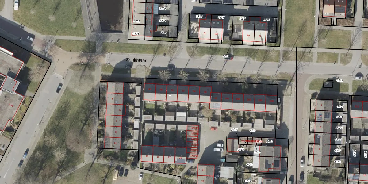 Het perceel waarop Zenithlaan 92 staat heeft een oppervlakte van 9705 m². Dit is een zeer groot perceel. De perceeloppervlakte wordt geregistreerd door het Kadaster. Gedetailleerde informatie over de maten van dit perceel kunt u vinden in het rapport Kadastrale kaart met maatvoering van Zenithlaan 92.