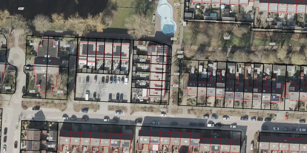 Zuiderkruis 42-c is gelegen op kadastraal perceel HGV00C3606. Deze kadastrale aanduiding is uniek en wordt gebruikt door het Kadaster om eigendomsrechten en andere zakelijke rechten vast te leggen. Het perceel maakt onderdeel uit van de kadastrale gemeente Hoogeveen.