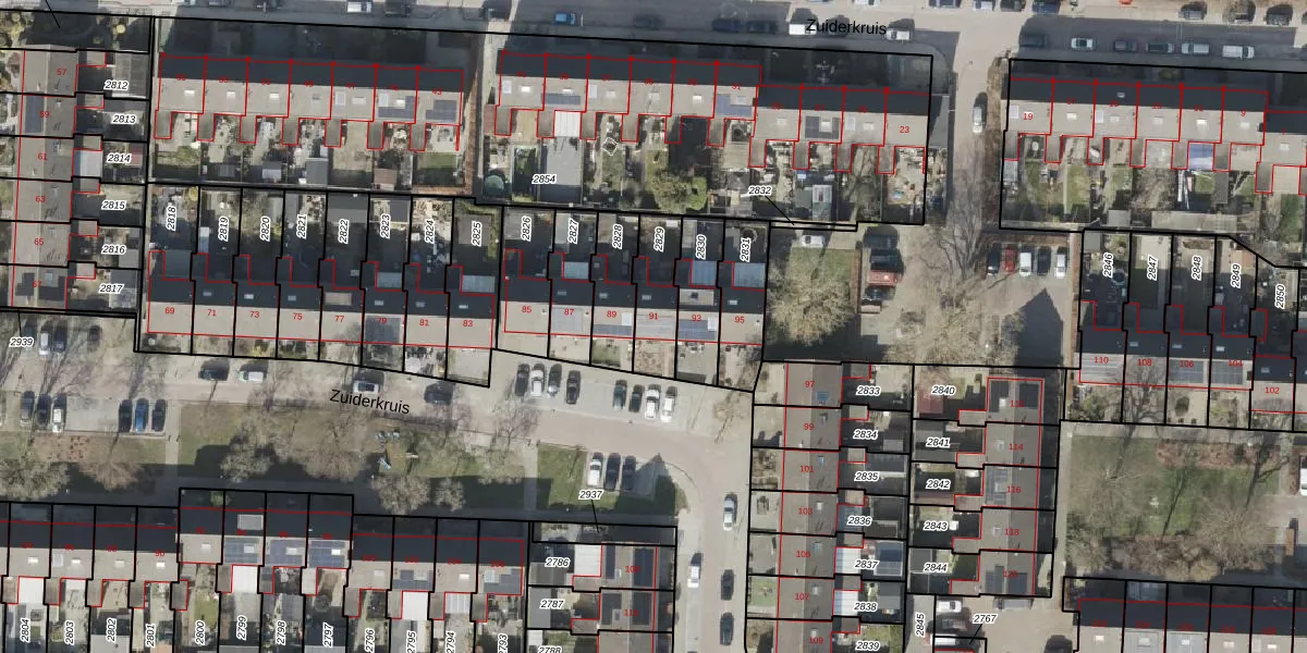 Het perceel waarop Zuiderkruis 91 staat heeft een oppervlakte van 162 m². Dit is een middelgroot perceel. De perceeloppervlakte wordt geregistreerd door het Kadaster. Gedetailleerde informatie over de maten van dit perceel kunt u vinden in het rapport Kadastrale kaart met maatvoering van Zuiderkruis 91.