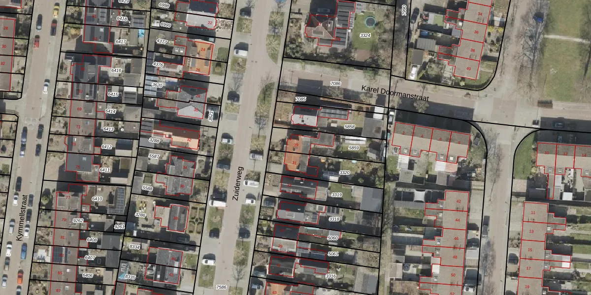 Zuiderweg 29 is gelegen op kadastraal perceel HGV00O5859. Deze kadastrale aanduiding is uniek en wordt gebruikt door het Kadaster om eigendomsrechten en andere zakelijke rechten vast te leggen. Het perceel maakt onderdeel uit van de kadastrale gemeente Hoogeveen.