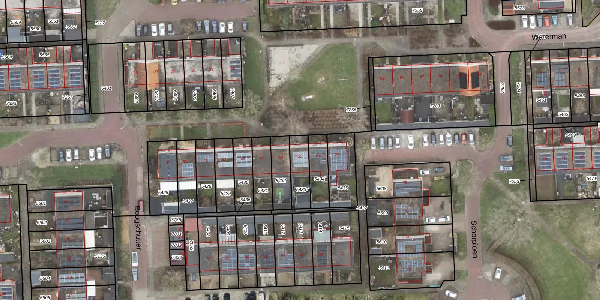 Het perceel waarop Boogschutter 51 staat heeft een oppervlakte van 154 m². Dit is een middelgroot perceel. De perceeloppervlakte wordt geregistreerd door het Kadaster. Gedetailleerde informatie over de maten van dit perceel kunt u vinden in het rapport Kadastrale kaart met maatvoering van Boogschutter 51.