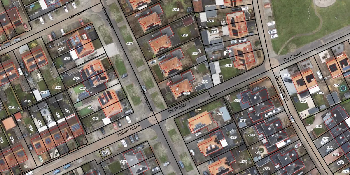 Het perceel waarop Boomgaard 46 staat heeft een oppervlakte van 459 m². Dit is een groot perceel. De perceeloppervlakte wordt geregistreerd door het Kadaster. Gedetailleerde informatie over de maten van dit perceel kunt u vinden in het rapport Kadastrale kaart met maatvoering van Boomgaard 46.