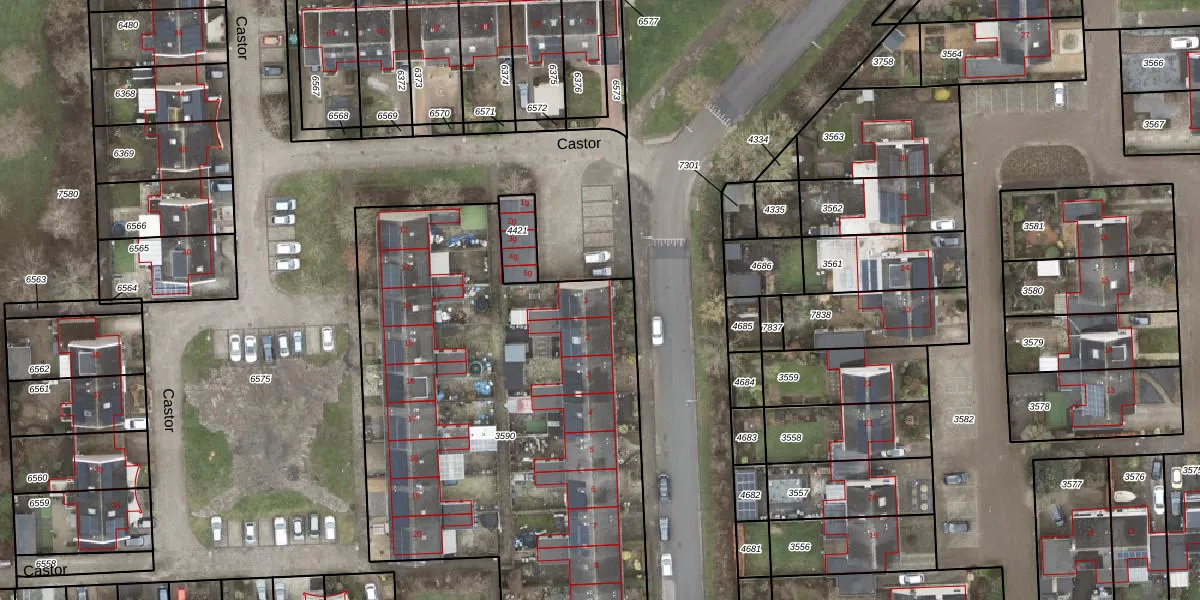 Het perceel waarop Castor 1 staat heeft een oppervlakte van 3024 m². Dit is een zeer groot perceel. De perceeloppervlakte wordt geregistreerd door het Kadaster. Gedetailleerde informatie over de maten van dit perceel kunt u vinden in het rapport Kadastrale kaart met maatvoering van Castor 1.