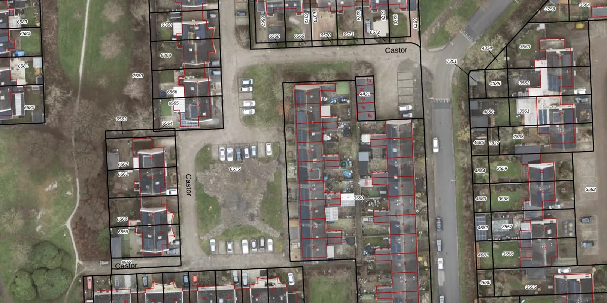 Het perceel waarop Castor 15 staat heeft een oppervlakte van 3024 m². Dit is een zeer groot perceel. De perceeloppervlakte wordt geregistreerd door het Kadaster. Gedetailleerde informatie over de maten van dit perceel kunt u vinden in het rapport Kadastrale kaart met maatvoering van Castor 15.