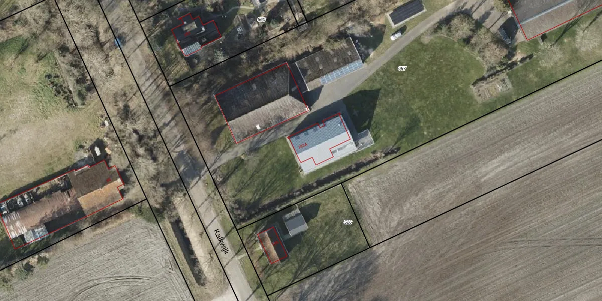 Het perceel waarop Kalkwijk 183-A staat heeft een oppervlakte van 1,2 ha. Dit is een zeer groot perceel. De perceeloppervlakte wordt geregistreerd door het Kadaster. Gedetailleerde informatie over de maten van dit perceel kunt u vinden in het rapport Kadastrale kaart met maatvoering van Kalkwijk 183-A.