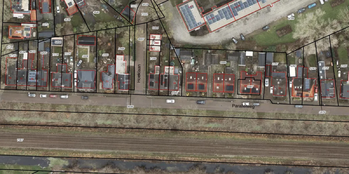 Parallelweg 59 is gelegen op kadastraal perceel HGZ00K6985. Deze kadastrale aanduiding is uniek en wordt gebruikt door het Kadaster om eigendomsrechten en andere zakelijke rechten vast te leggen. Het perceel maakt onderdeel uit van de kadastrale gemeente Hoogezand.