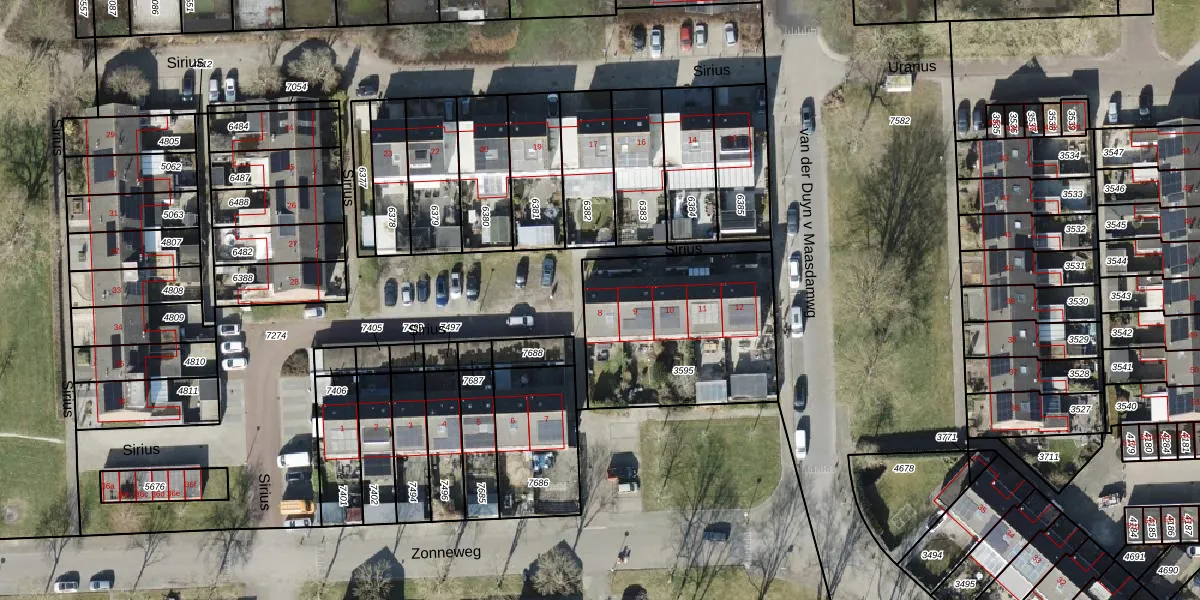 Het perceel waarop Sirius 8 staat heeft een oppervlakte van 786 m². Dit is een groot perceel. De perceeloppervlakte wordt geregistreerd door het Kadaster. Gedetailleerde informatie over de maten van dit perceel kunt u vinden in het rapport Kadastrale kaart met maatvoering van Sirius 8.