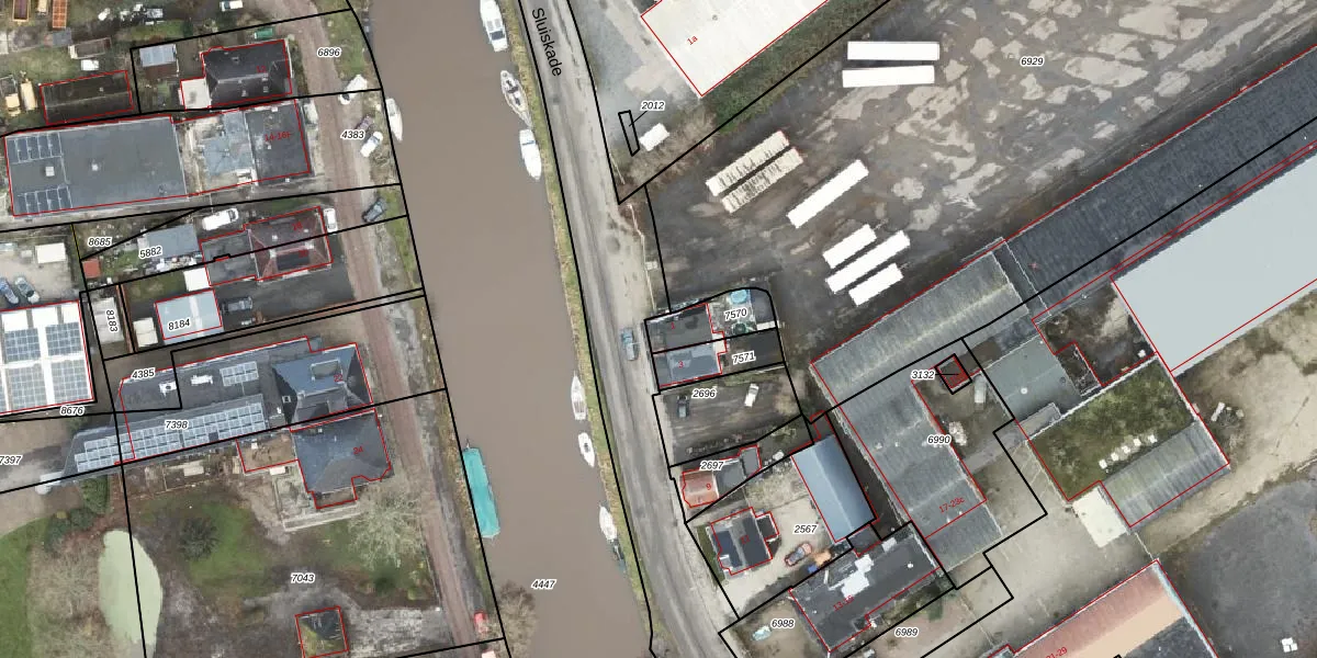 Sluiskade 1 is gelegen op kadastraal perceel HGZ00K7570. Deze kadastrale aanduiding is uniek en wordt gebruikt door het Kadaster om eigendomsrechten en andere zakelijke rechten vast te leggen. Het perceel maakt onderdeel uit van de kadastrale gemeente Hoogezand.