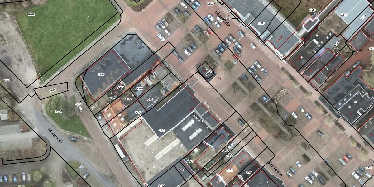 Het perceel waarop Sluiskade 16 staat heeft een oppervlakte van 1970 m². Dit is een zeer groot perceel. De perceeloppervlakte wordt geregistreerd door het Kadaster. Gedetailleerde informatie over de maten van dit perceel kunt u vinden in het rapport Kadastrale kaart met maatvoering van Sluiskade 16.