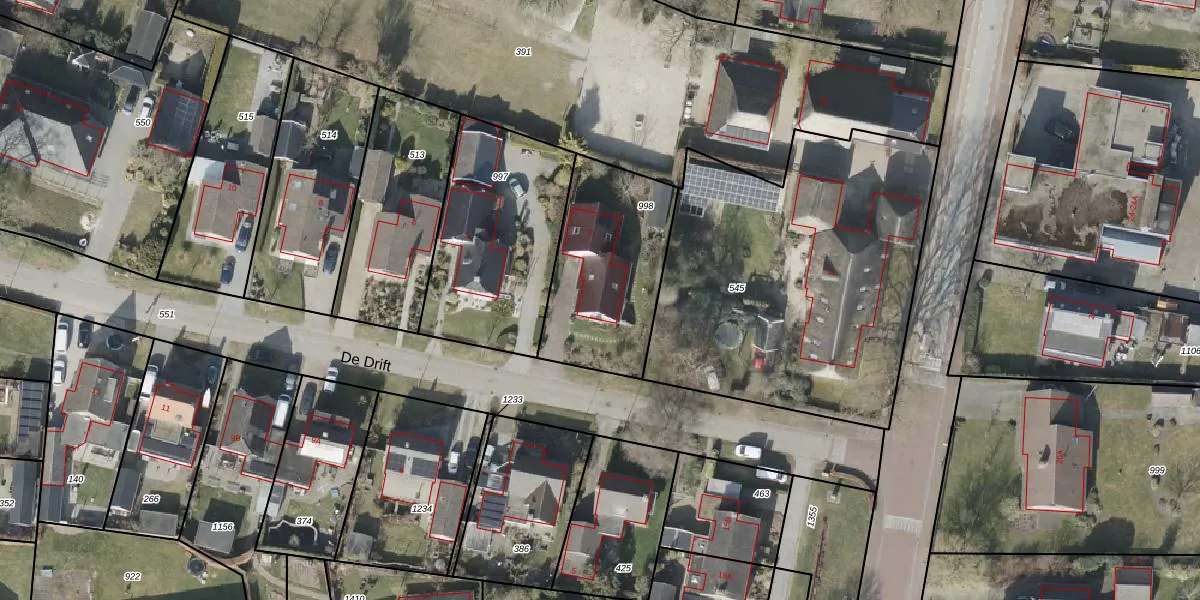 Het perceel waarop De Drift 2 staat heeft een oppervlakte van 590 m². Dit is een groot perceel. De perceeloppervlakte wordt geregistreerd door het Kadaster. Gedetailleerde informatie over de maten van dit perceel kunt u vinden in het rapport Kadastrale kaart met maatvoering van De Drift 2.