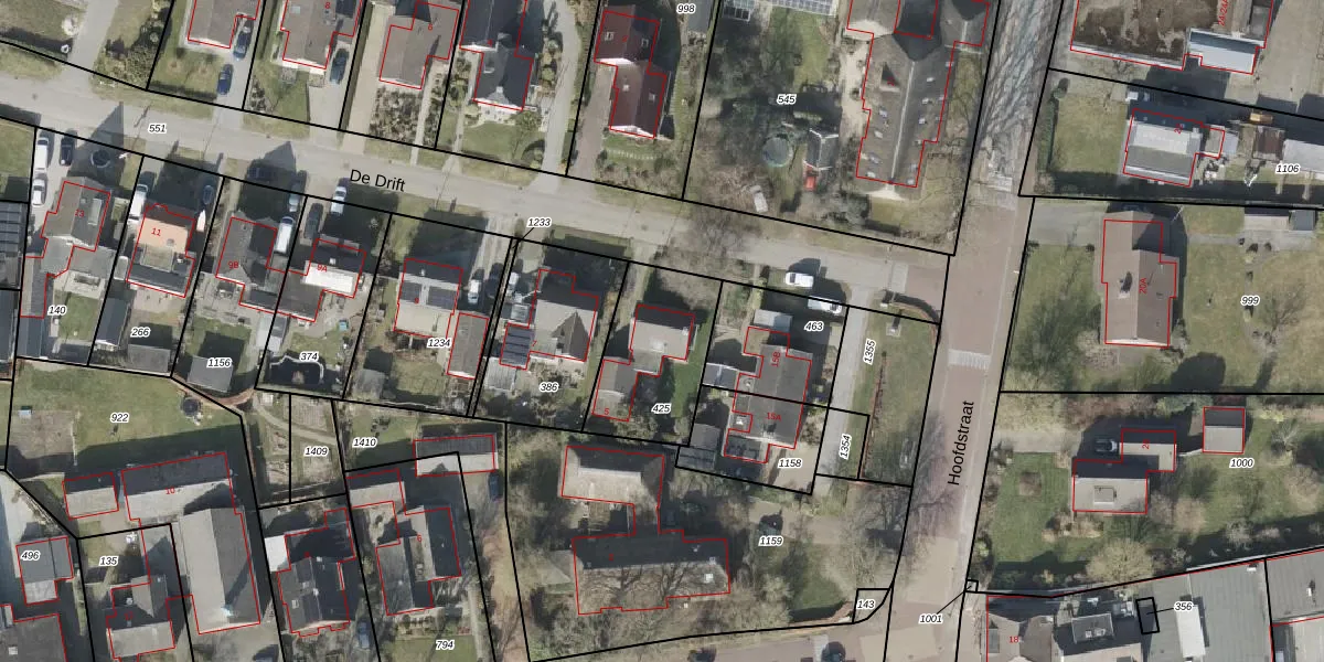 Gebruik de zoekbalk of klik op een perceel voor informatie over de adressen binnen dit perceel.