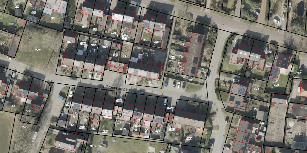 Het perceel waarop De Groenkampen 2 staat heeft een oppervlakte van 1635 m². Dit is een zeer groot perceel. De perceeloppervlakte wordt geregistreerd door het Kadaster. Gedetailleerde informatie over de maten van dit perceel kunt u vinden in het rapport Kadastrale kaart met maatvoering van De Groenkampen 2.