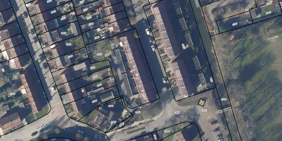 Het perceel waarop Dahliastraat 102 staat heeft een oppervlakte van 1533 m². Dit is een zeer groot perceel. De perceeloppervlakte wordt geregistreerd door het Kadaster. Gedetailleerde informatie over de maten van dit perceel kunt u vinden in het rapport Kadastrale kaart met maatvoering van Dahliastraat 102.