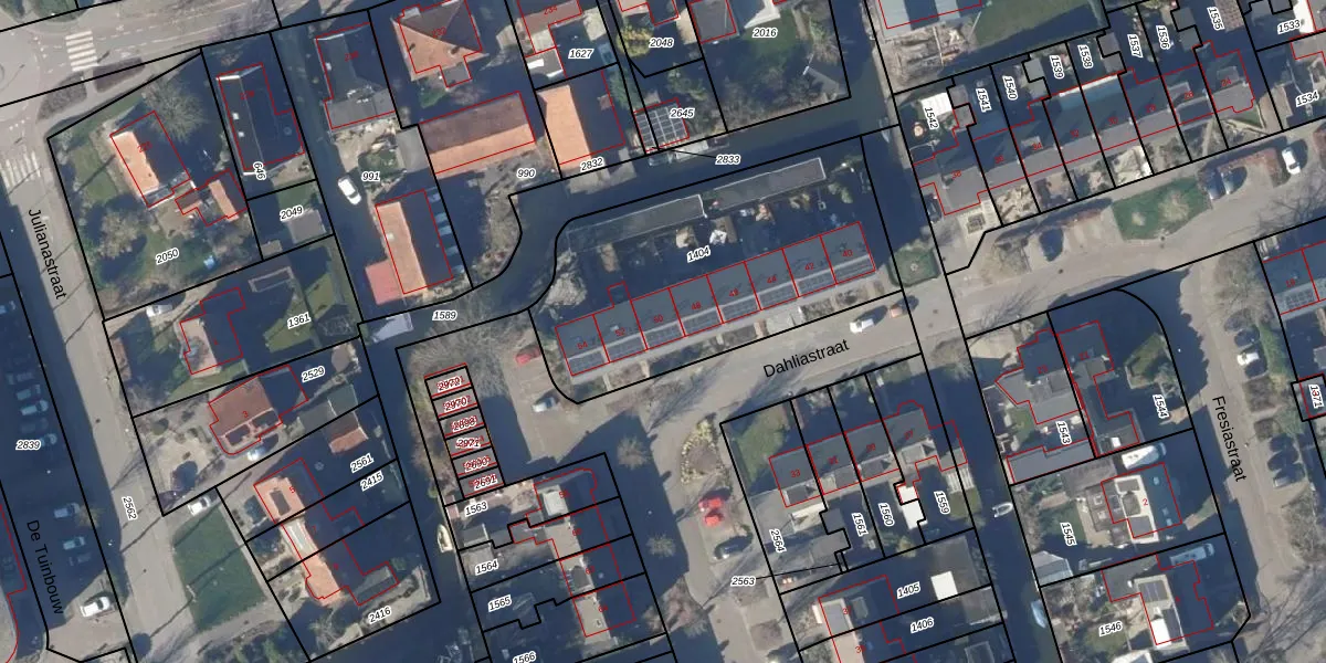 Het perceel waarop Dahliastraat 50 staat heeft een oppervlakte van 1345 m². Dit is een zeer groot perceel. De perceeloppervlakte wordt geregistreerd door het Kadaster. Gedetailleerde informatie over de maten van dit perceel kunt u vinden in het rapport Kadastrale kaart met maatvoering van Dahliastraat 50.